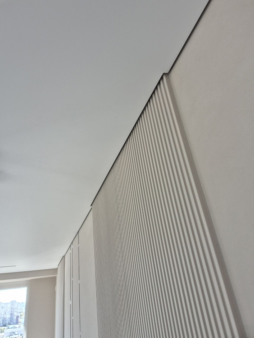 - Отступ от стены позволяет делать ремонт в помещении не снимая потолок, за него можно завести обои или достать кисточкой при окрашивании стен.